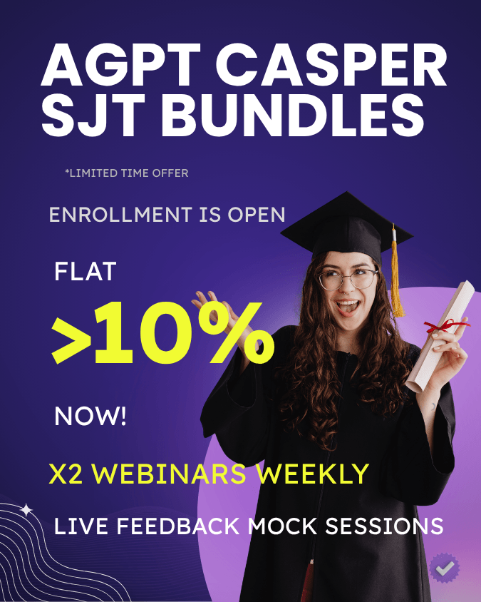 Unlock Your AGPT Spot! Do not leave your fate to chance! Curious about the SJT CASPer test? Want insider tips to ACE the test and secure your AGPT spot? Don’t miss out! Join our LIVE webinars(access immediately recorded webinars also). Get expert advice, proven strategies, and everything you need to succeed.