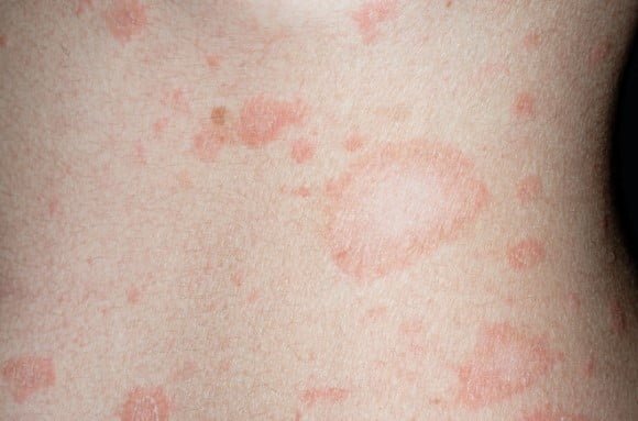 Cameron, a 6-year-old boy living in coastal New South Wales, returns to your general practice with his mother following a persistent, widespread rash. One week earlier, he was diagnosed with an allergic rash and prescribed an antihistamine, but there has been no improvement. Cameron is otherwise healthy, with no personal or family history of eczema, asthma, or hay fever. He has not been unwell, has no fever, and continues to play energetically outside during unusually warm spring weather. His mother reports no changes in diet, detergents, or soap, and no known contacts with similar symptoms. Notably, she recalls that about a week ago, a single, larger patch appeared on Cameron’s chest 5 days before the remainder of the rash erupted. The current rash is slightly itchy, covers his trunk and upper limbs, appears as multiple oval pink patches (1–3cm), some with fine scaling at the edges, and seems to follow the skin creases (“Christmas tree” pattern). Examination is otherwise normal, with Cameron appearing well and afebrile.